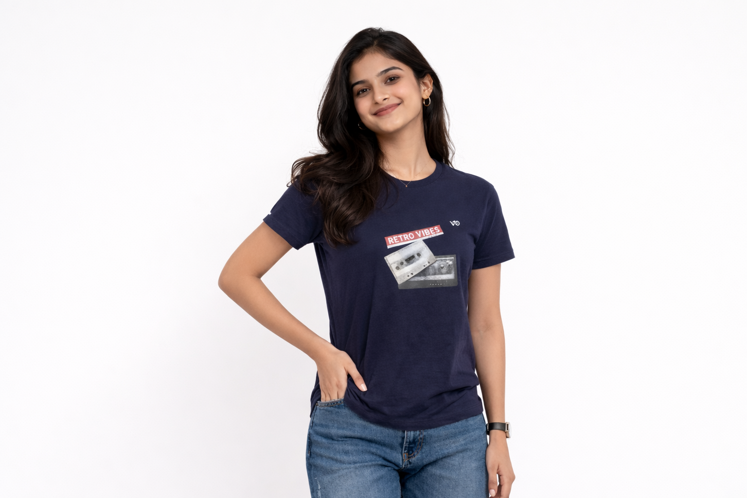 Shop VIBON Originals Women’s Navy Blue Retro Vibes T-Shirt. 100% pure cotton, breathable, soft & perfect for everyday comfort. Limited drop. Buy now.